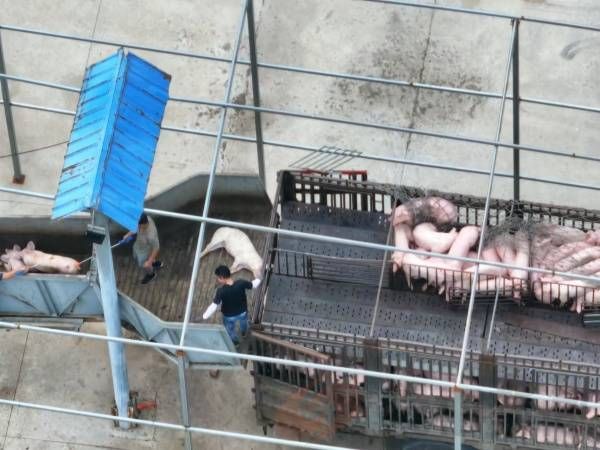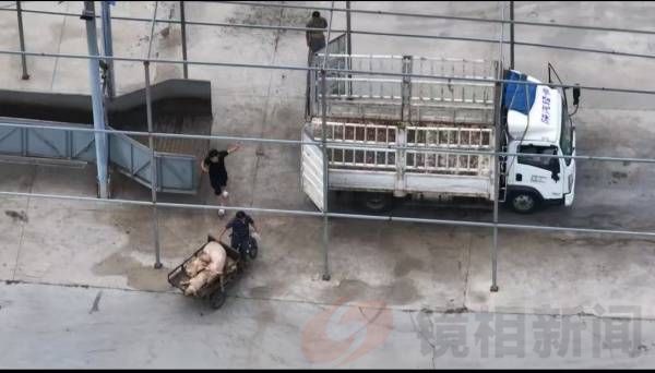 该屠宰企业死猪入场并由工作人员运往屠宰车间,视频截图